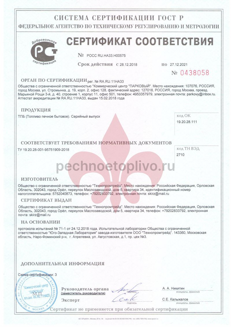 Товар сертифицирован. Сертификат соответствия, экспертное заключение и паспорта качества предоставляются по запросу.